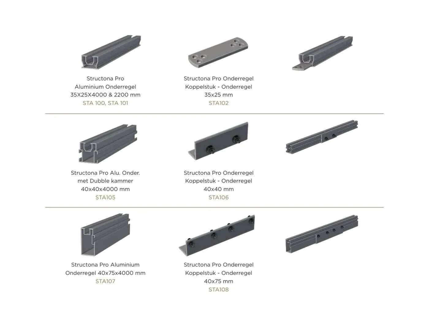 Wij bieden de Structona PVC onderregels aan in de volgende varianten, allemaal met een standaardlengte van 3,6 m:
